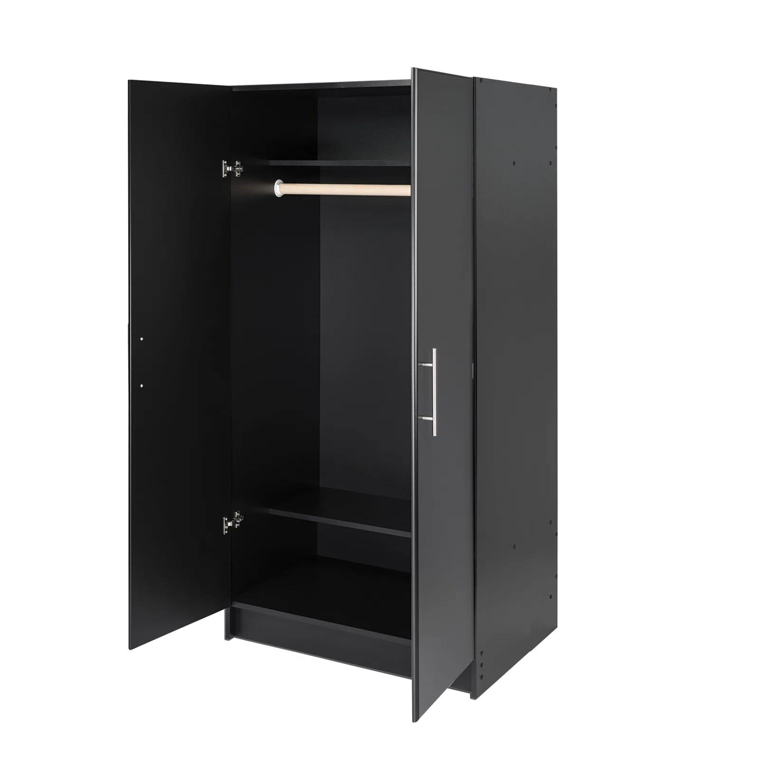 Bedroom Armoire Wardrobe Cabinet with Hanging Rail in Black Wood Finish