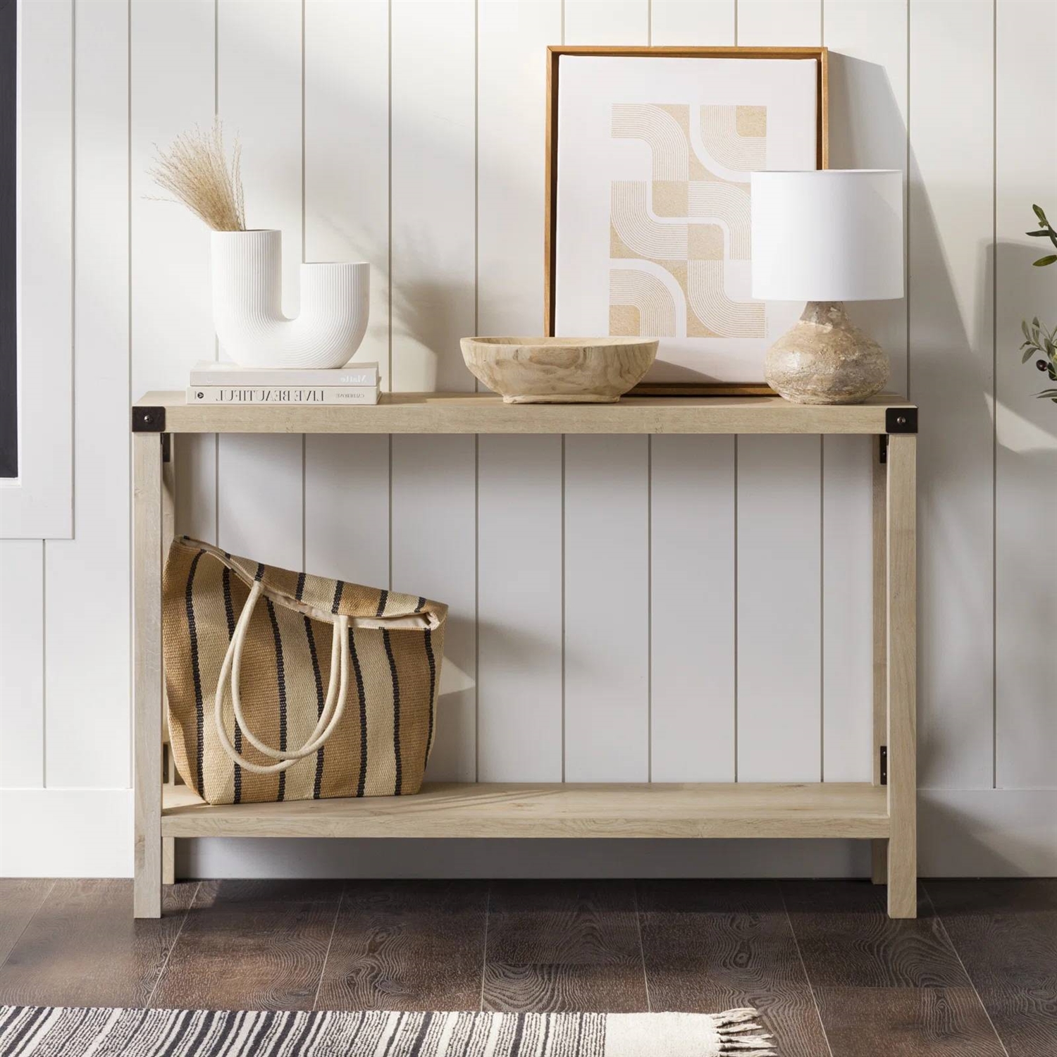 Home > Industrial Farmhouse Entryway Table / Sofa Table in White Oak Wood Finish