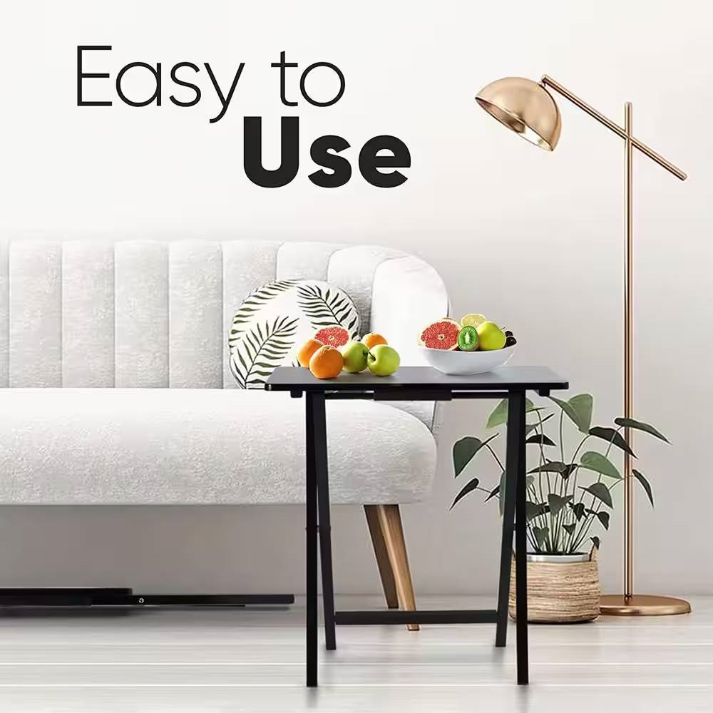 Set of 2 - Folding TV Tray Table Set in Black Wood Finish