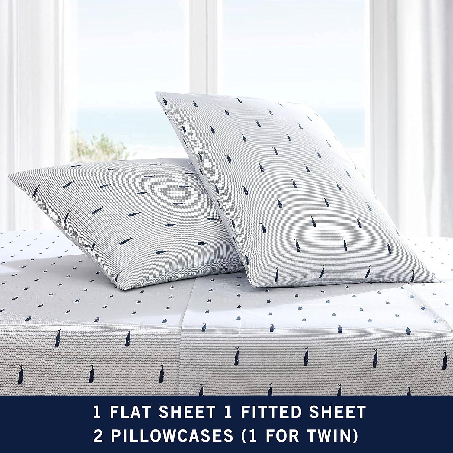 Full size Coastal Beach 100-Percent Cotton Navy Blue White Stripe Sheet Set