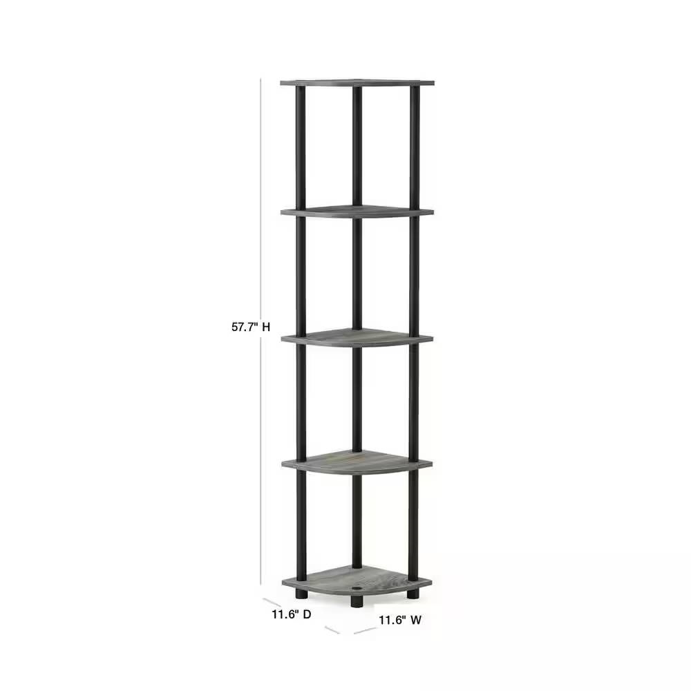 5-Shelf Modern Corner Bookcase in Grey Oak Wood Finish