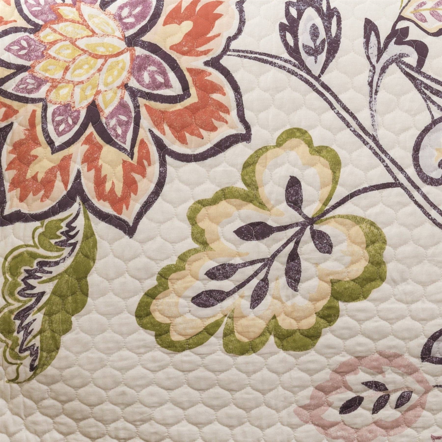 Home > Full/Queen 3 Piece Floral Boho Cotton Off-White Navy Pastel Quilt Set