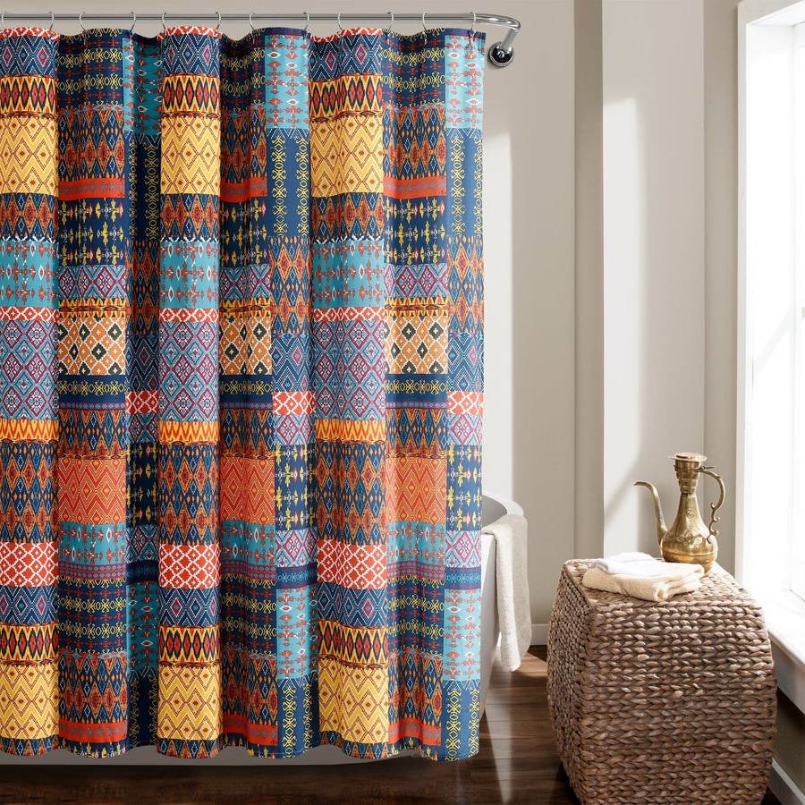 Home > 72-inch Navy Blue Orange Yellow Teal Boho Patchwork Polyester Shower Curtain