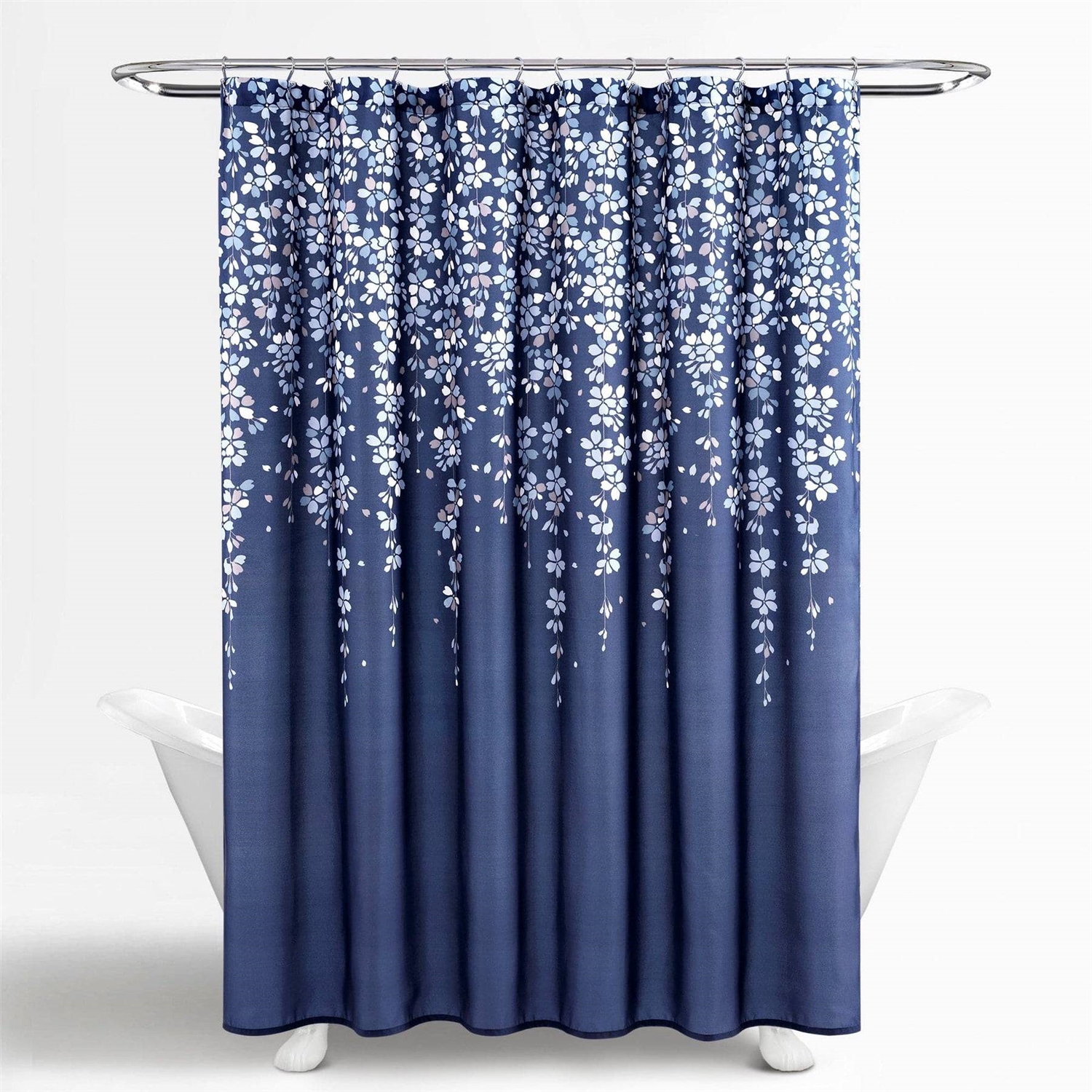 72-inch Navy Light Blue White Floral Vines and Flowers Shower Curtain 72-inch Navy Light Blue White Floral Vines and Flowers Shower Curtain 72-inch Navy Light Blue White Floral Vines and Flowers Shower Curtain