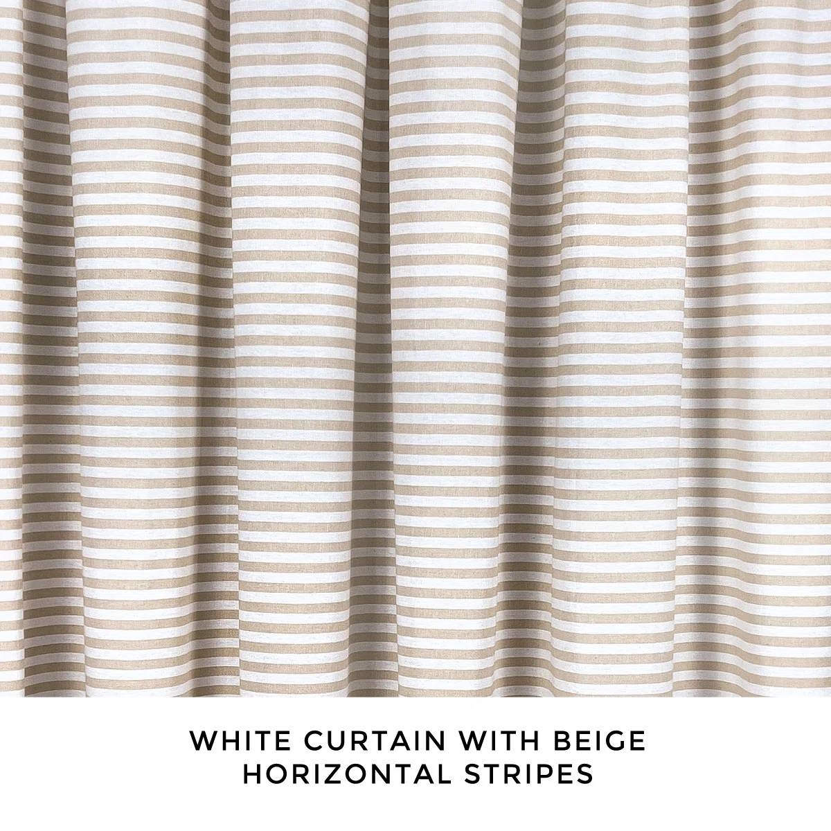 72-inch Beige White Stripe Cotton Shower Curtain with Boho Farmhouse Tassels 72-inch Beige White Stripe Cotton Shower Curtain with Boho Farmhouse Tassels