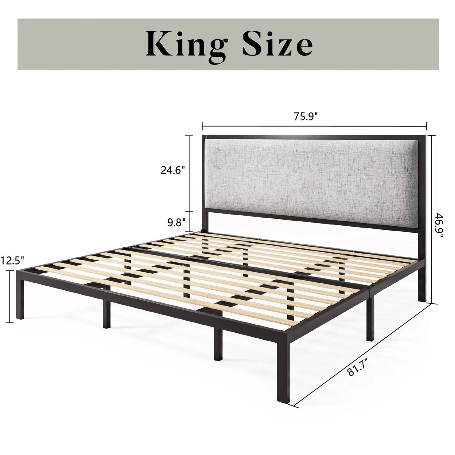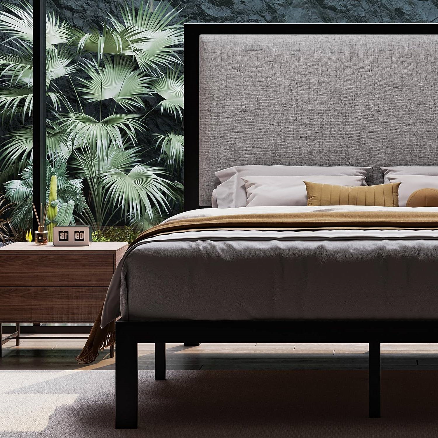 King Black Metal Platform Bed Frame with Tall Grey Linen Upholstered Headboard King Black Metal Platform Bed Frame with Tall Grey Linen Upholstered Headboard King Black Metal Platform Bed Frame with Tall Grey Linen Upholstered Headboard King Black Metal Platform Bed Frame with Tall Grey Linen Upholstered Headboard King Black Metal Platform Bed Frame with Tall Grey Linen Upholstered Headboard