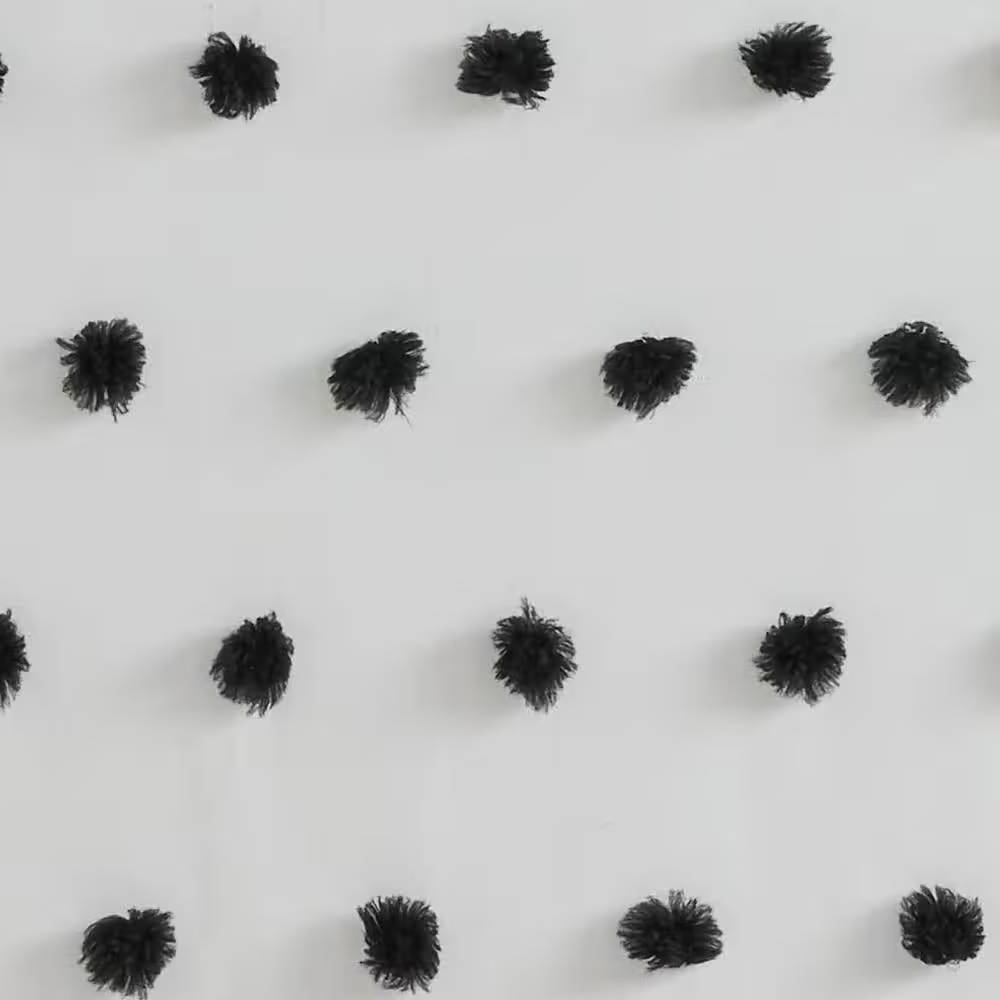 72-inch White Polyester Fabric Shower Curtain with Black Pom Pom Polka Dots
