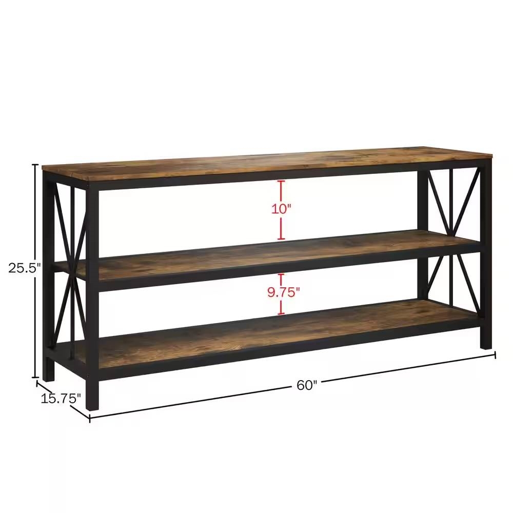 Modern Black Metal TV Stand with Barn Wood Finish Shelves - TV's up to 70-inch