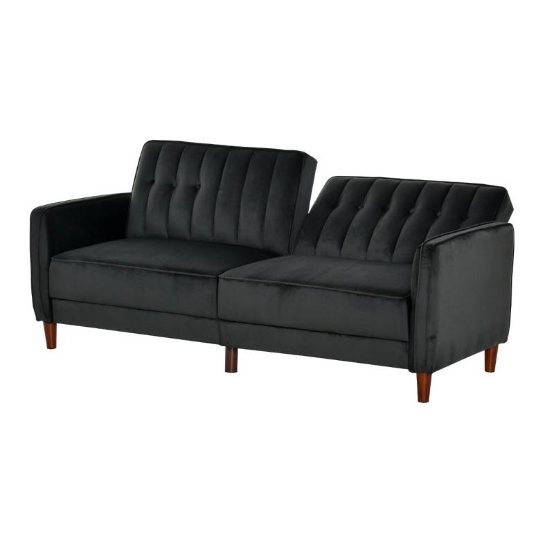 Home > Mid-Century Modern Futon Sleeper Sofa Bed in Black Velvet Upholstery