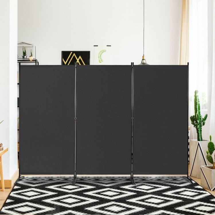 Home > 6-Ft Black 3-Panel Room Divider Screen with Steel Base and Heavy Duty Hinges
