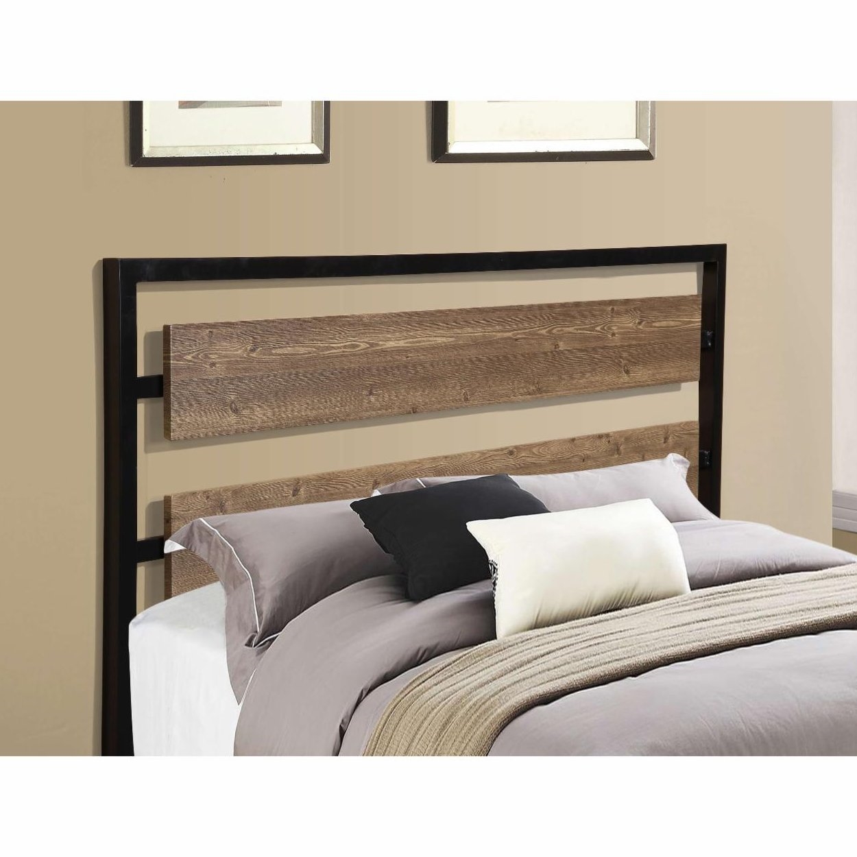 Full Size Industrial Metal Platform Bed Frame with Wood Panel Headboard