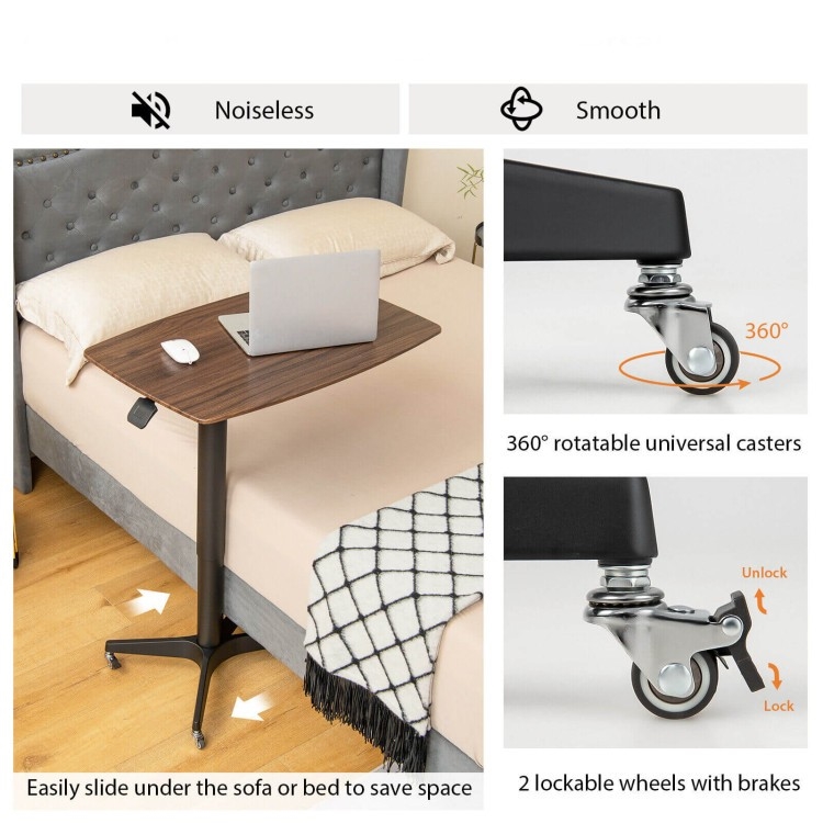 Adjustable Mobile Standing Desk Large TV Tray Table with Lockable Wheels