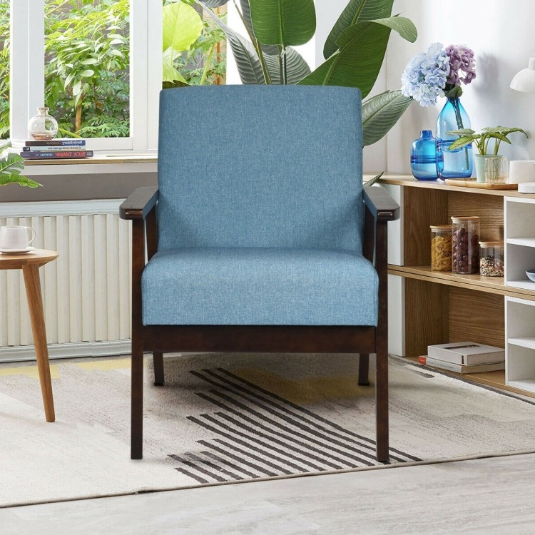 Home > Retro Modern Classic Blue Linen Wide Accent Chair with Espresso Wood Frame