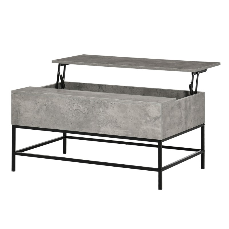 Home > Modern Grey Lift Top Coffee Table w/ Hidden Storage Black Metal Legs