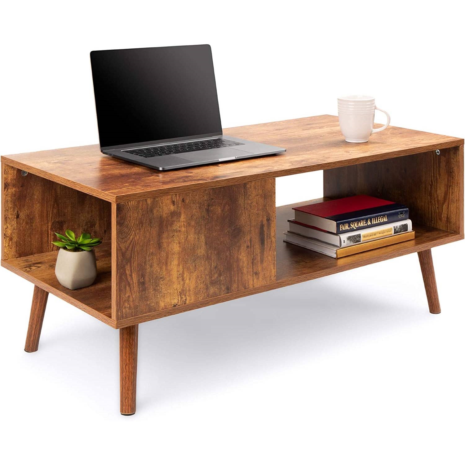 Modern Mid-Century Coffee Table Living Room Storage Shelf in Brown Wood