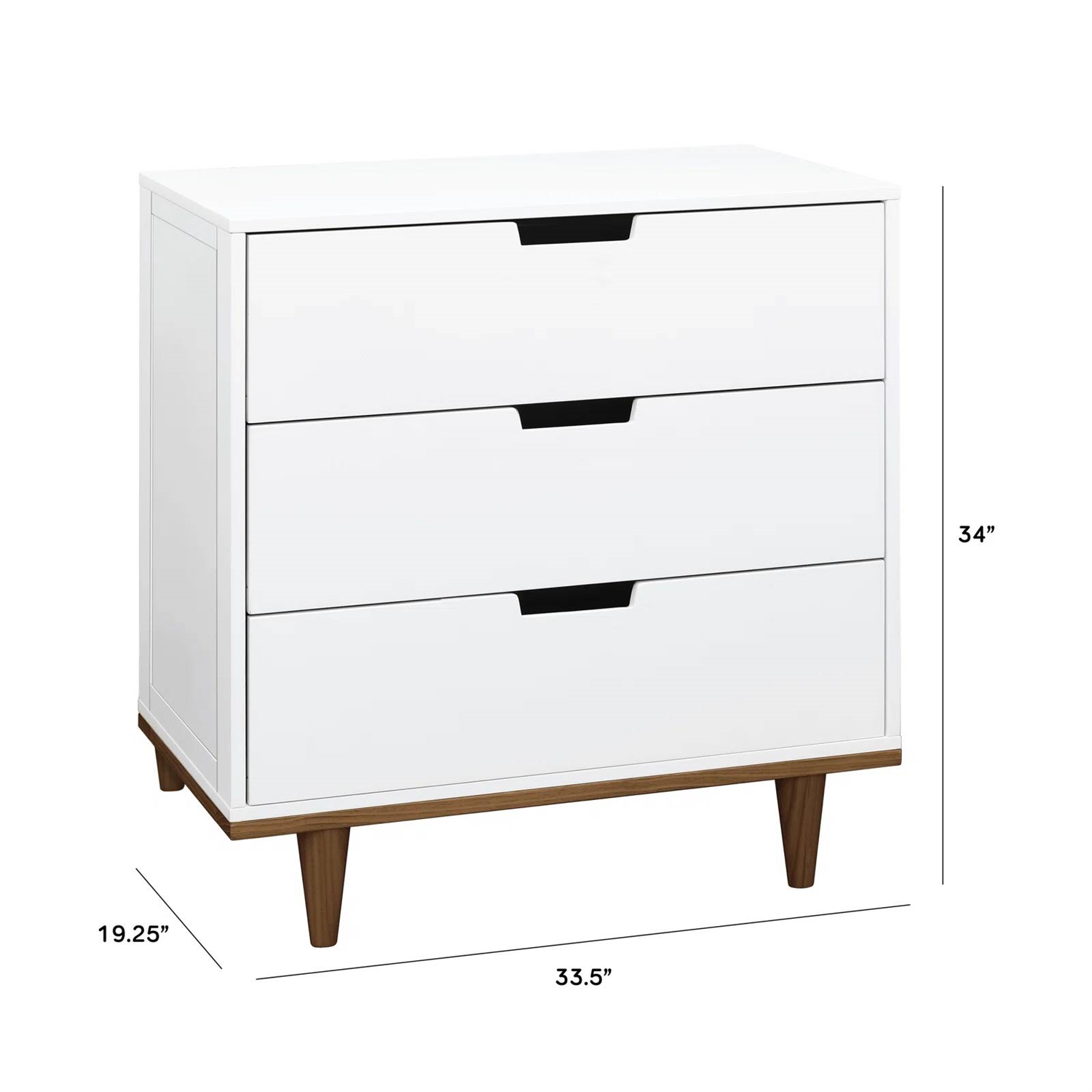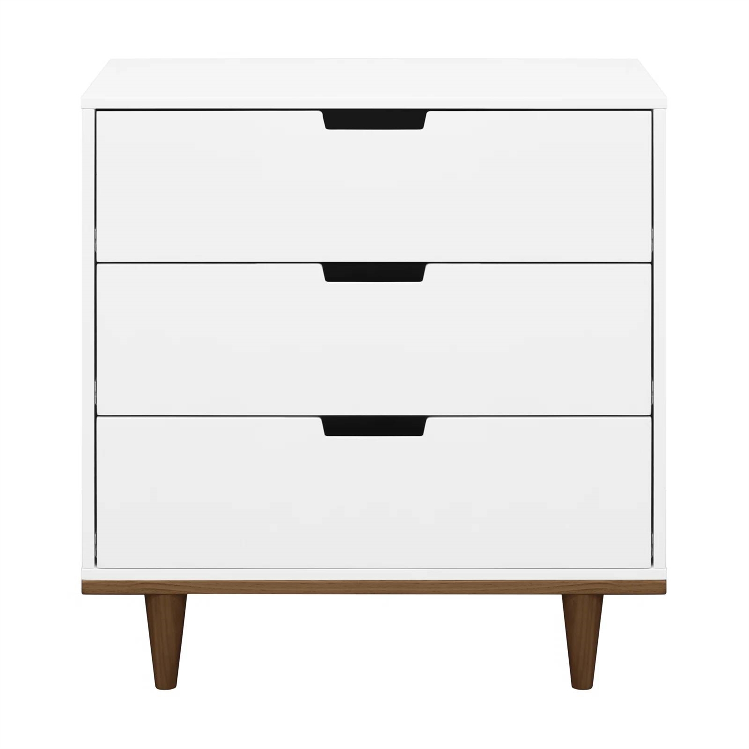 Modern Mid-Century Style 3-Drawer Dresser Chest in White Walnut Wood Finish