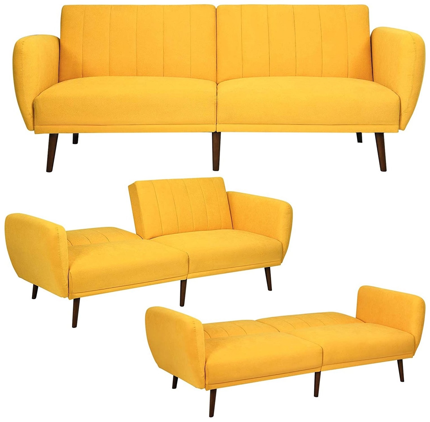 Modern Scandinavian Yellow Linen Upholstered Sofa Bed with Wooden Legs Modern Scandinavian Yellow Linen Upholstered Sofa Bed with Wooden Legs Modern Scandinavian Yellow Linen Upholstered Sofa Bed with Wooden Legs