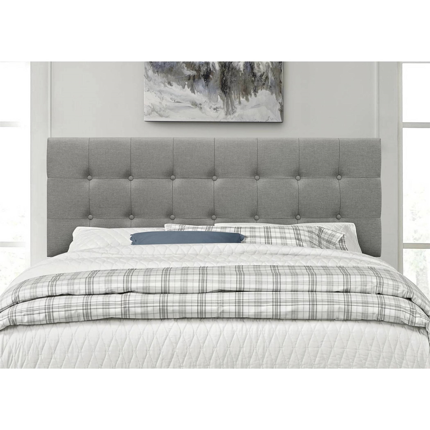 King size Mid-Century Style Button-Tufted Headboard in Grey Upholstered Fabric