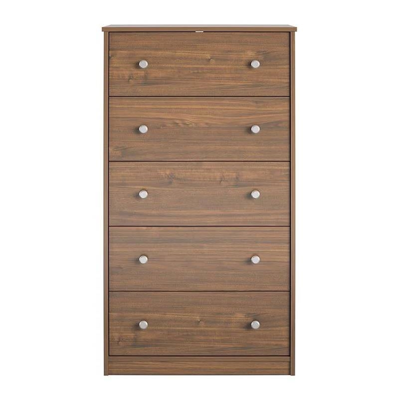 Modern 5-Drawer Bedroom Chest of Drawers in Rustic Walnut Wood Finish