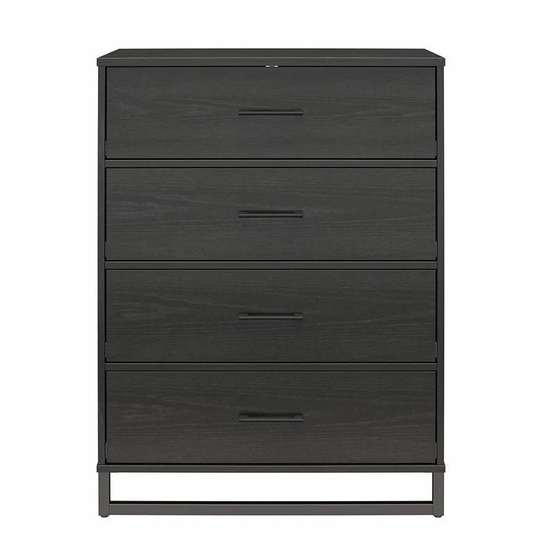 Modern 4-Drawer Bedroom Chest Dresser in Rustic Black Wood Finish