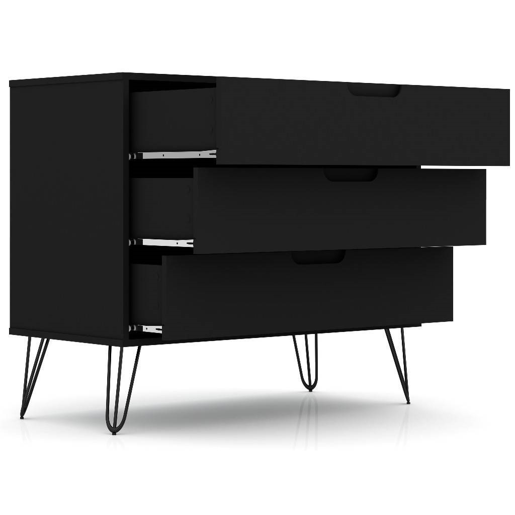 Modern Scandinavian Style Bedroom 3-Drawer Dresser in Black Wood Finish