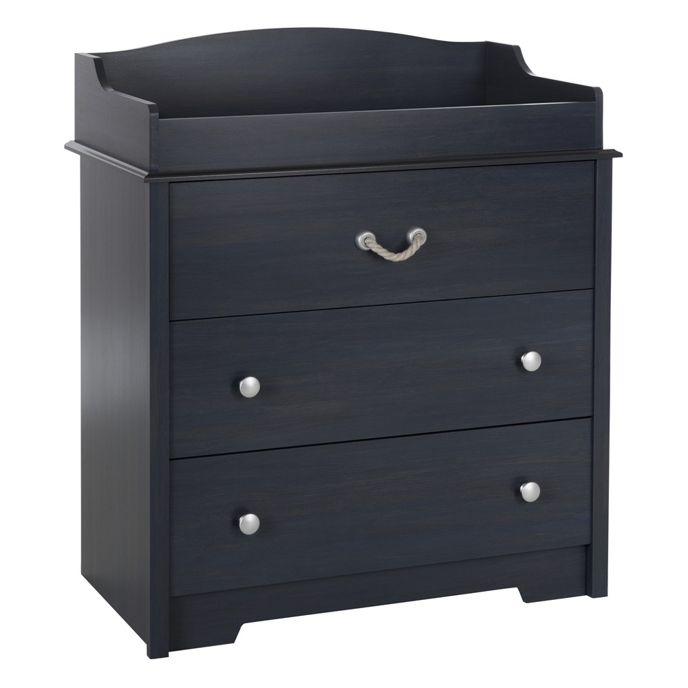 Home > Nautical Nursery 3 Drawer Rope Handle Baby Changing Table in Dark Blue