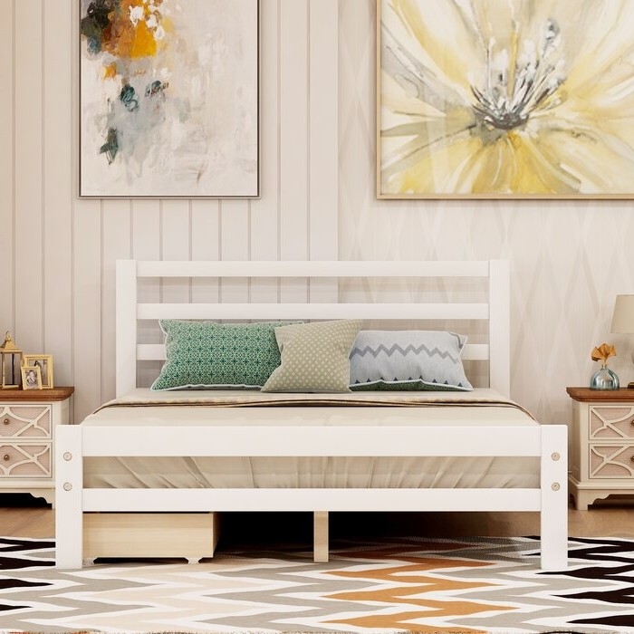 Full size White Low Profile 2 Drawer Storage Platform Bed