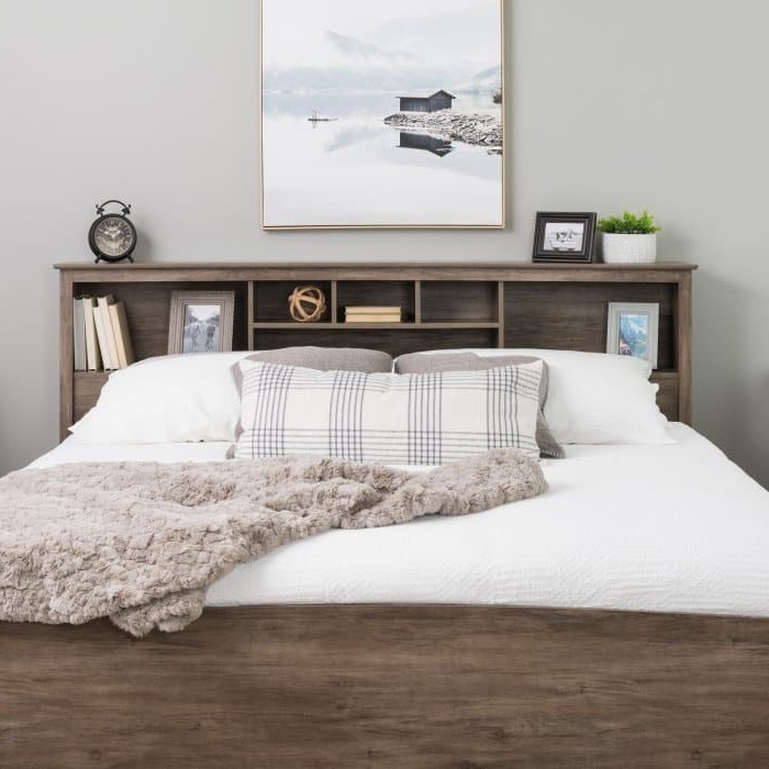 Home > King size Bookcase Headboard in Drifted Gray Wood Finish