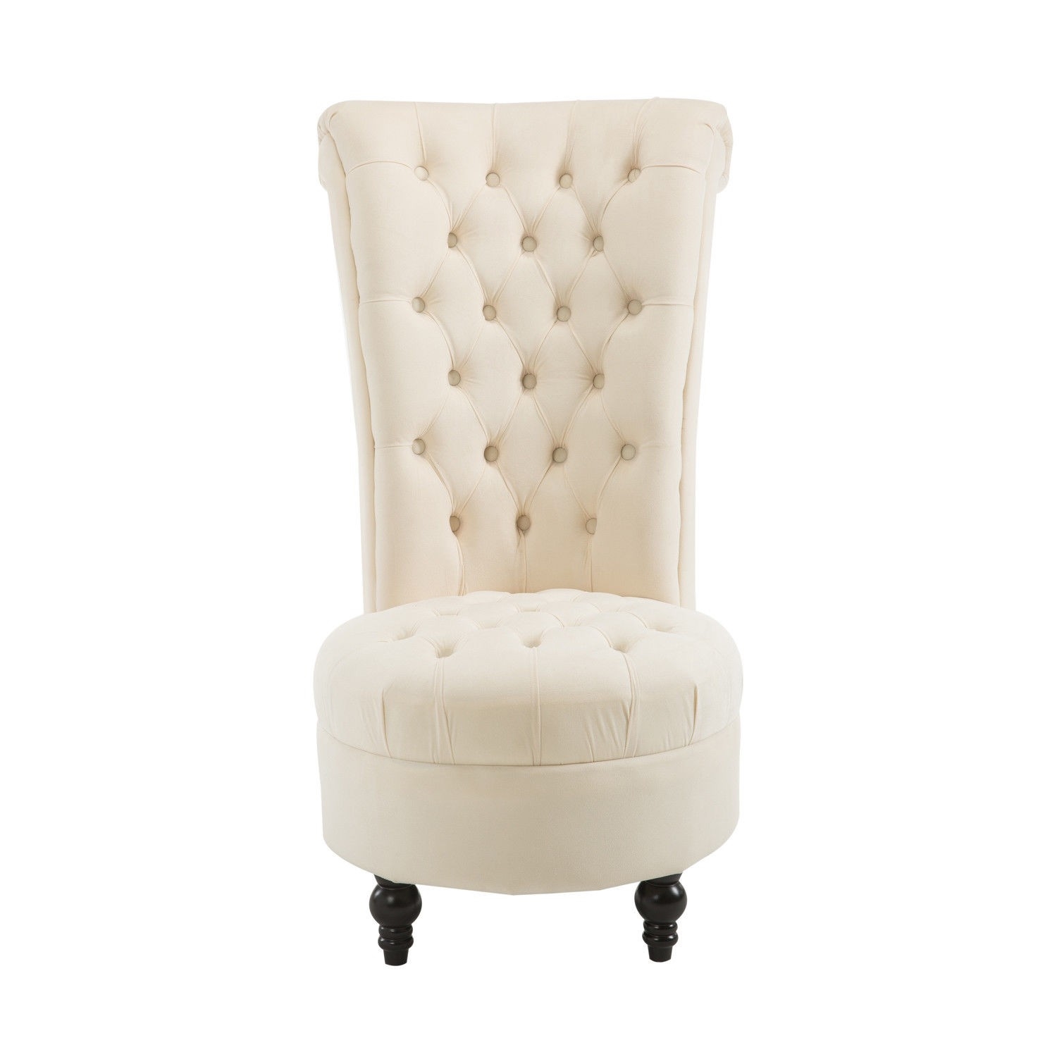 Home > Cream Tufted High Back Plush Velvet Upholstered Accent Low Profile Chair