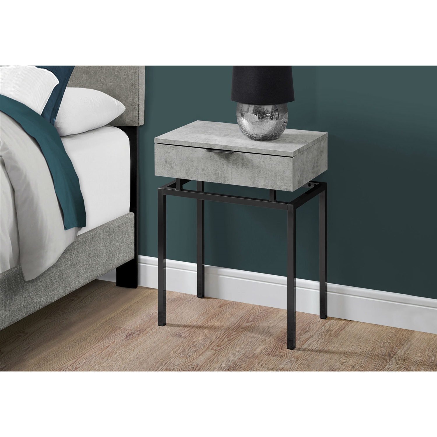 24in Modern End Table 1 Drawer Nightstand Grey with Black Metal Legs