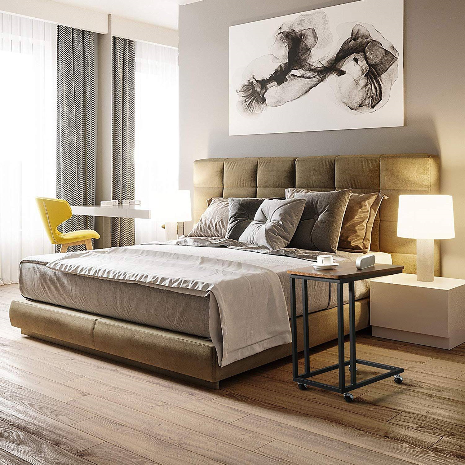Modern Industrial Side Table Nightstand TV Tray on Wheels