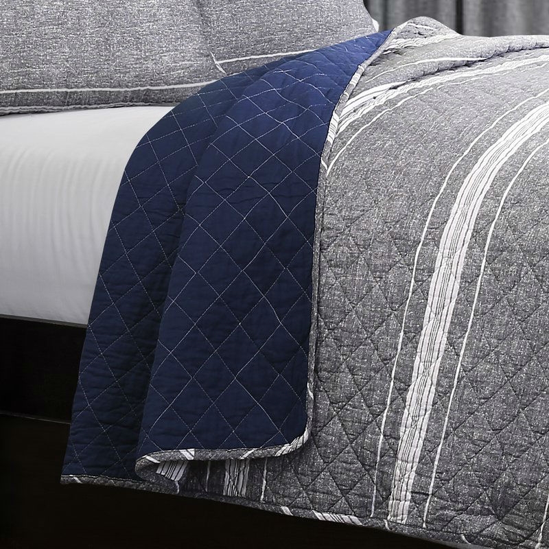King Gray Navy Stripe Motif 100% Cotton Reversible Quilt Coverlet Bedspread Set King Gray Navy Stripe Motif 100% Cotton Reversible Quilt Coverlet Bedspread Set King Gray Navy Stripe Motif 100% Cotton Reversible Quilt Coverlet Bedspread Set
