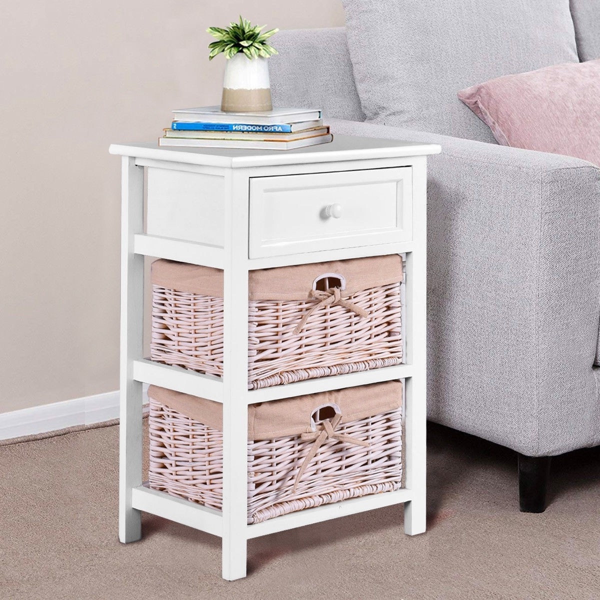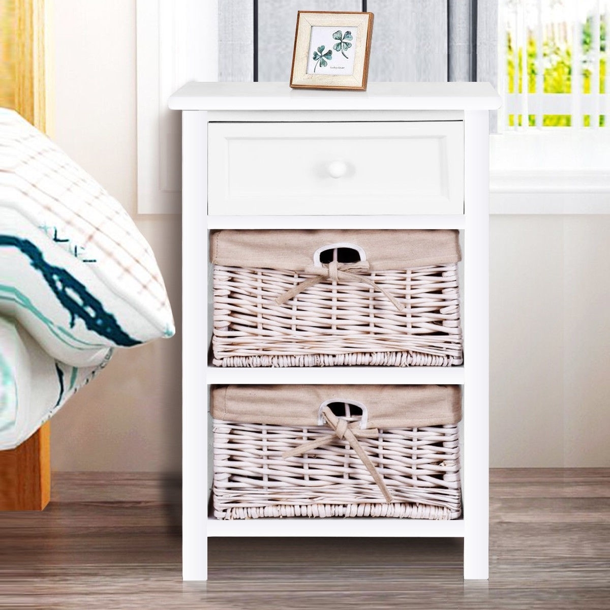 White Wooden 1-Drawer End Table Nightstand with 2 Baskets White Wooden 1-Drawer End Table Nightstand with 2 Baskets White Wooden 1-Drawer End Table Nightstand with 2 Baskets White Wooden 1-Drawer End Table Nightstand with 2 Baskets White Wooden 1-Drawer End Table Nightstand with 2 Baskets