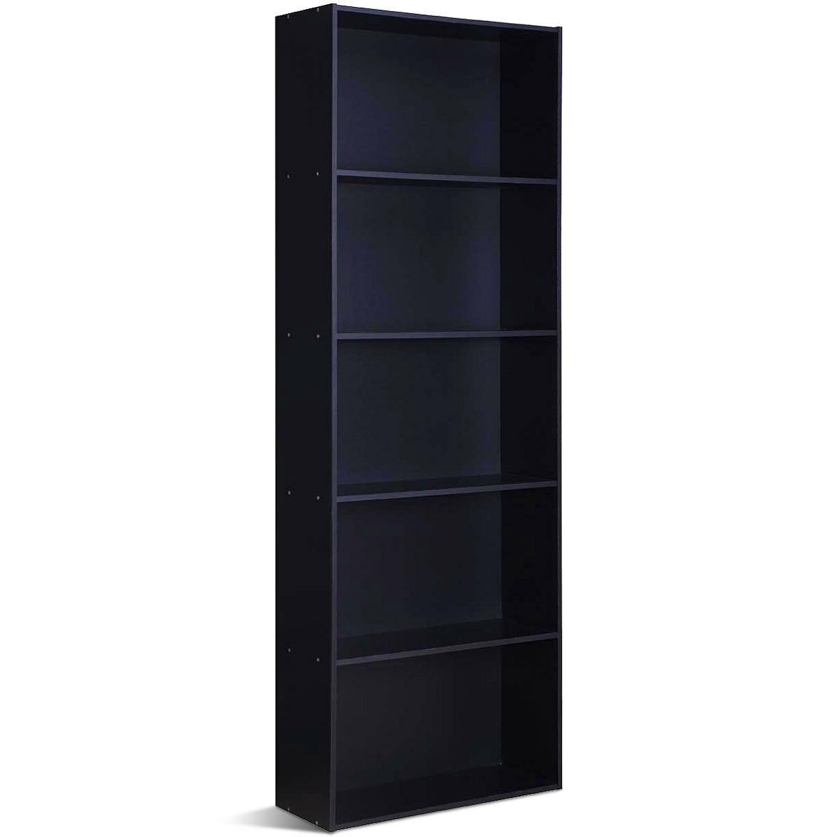 Modern 5-Shelf Bookcase Storage Shelves in Black Wood Finish
