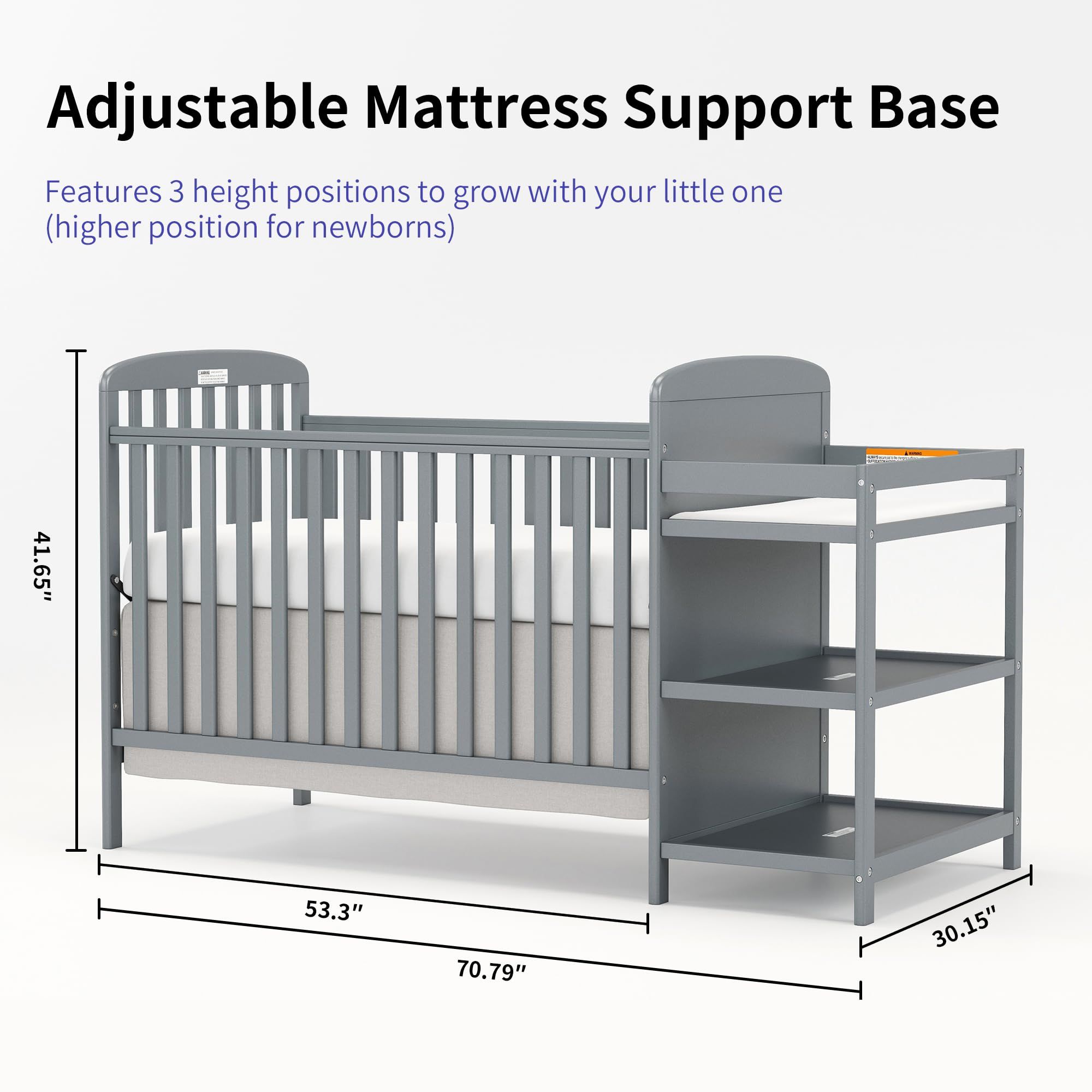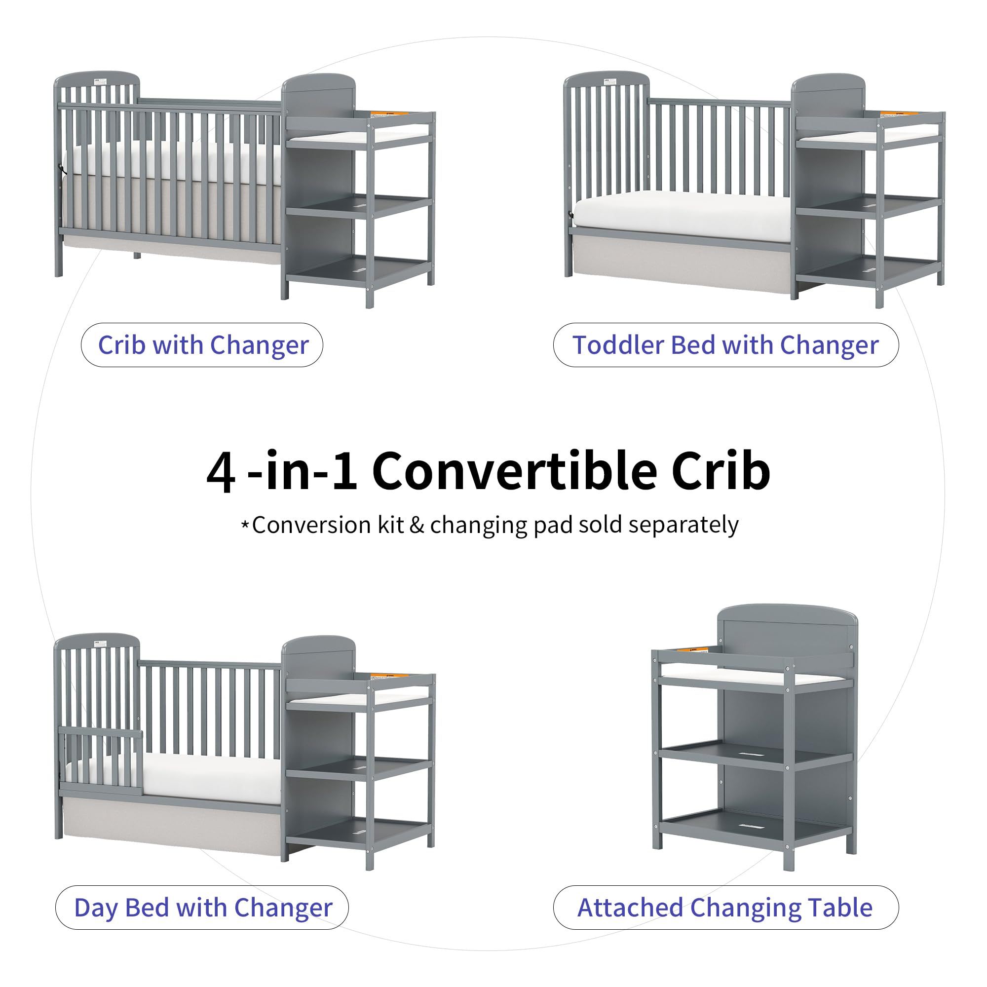 4-in-1 Convertible Baby Crib with Changing Table Combo, Wood Full Size Baby Crib, 4 Adjustable Heights, Non-Toxic Finishes 4-in-1 Convertible Baby Crib with Changing Table Combo, Wood Full Size Baby Crib, 4 Adjustable Heights, Non-Toxic Finishes 4-in-1 Convertible Baby Crib with Changing Table Combo, Wood Full Size Baby Crib, 4 Adjustable Heights, Non-Toxic Finishes